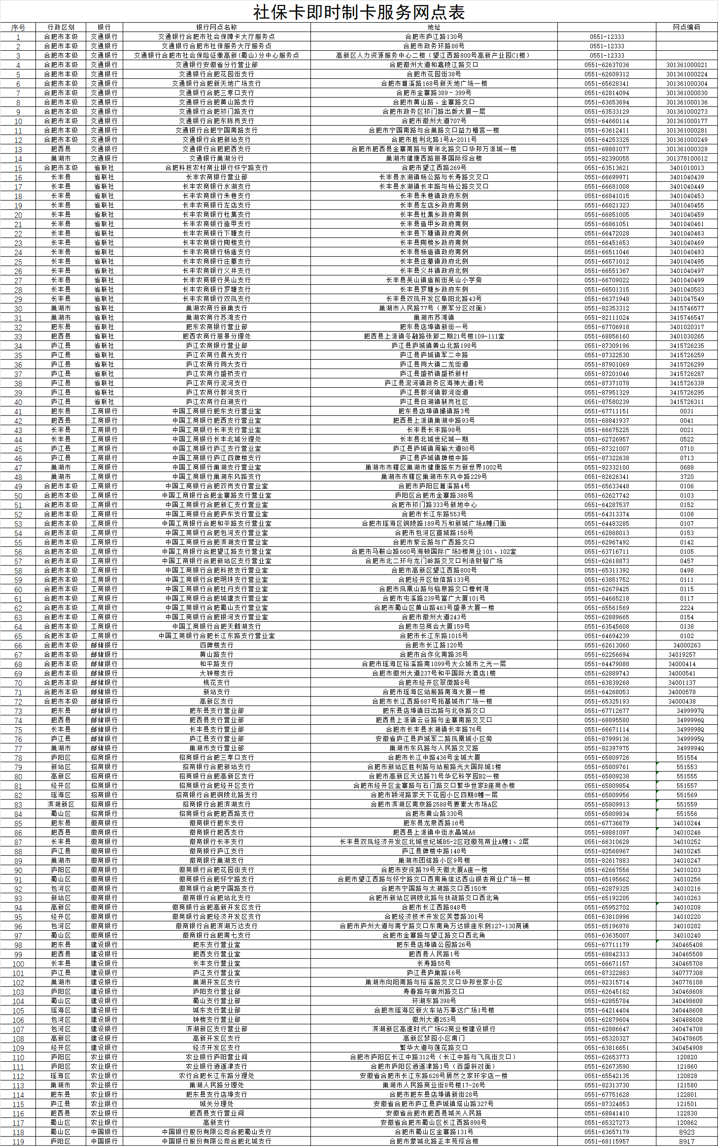 社保卡即時制卡服務(wù)網(wǎng)點表